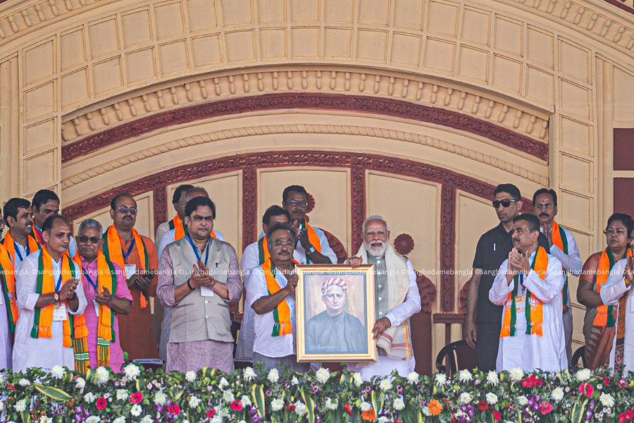 কলকাতার ব্রিগেড প্যারেড গ্রাউন্ডে আয়োজিত এক রাজনৈতিক সভায় দেখা গেল এক বিশেষ মুহূর্ত। সভার মঞ্চে উপস্থিত প্রধানমন্ত্রী নরেন্দ্র মোদি স্বামী বিবেকানন্দের প্রতিকৃতিকে সম্মান জানালেন। মঞ্চে দাঁড়িয়ে তিনি একটি ফ্রেমবন্দি প্রতিকৃতি হাতে তুলে ধরেন, যা সভায় উপস্থিত কর্মী ও সমর্থকদের দৃষ্টি আকর্ষণ করে।মঞ্চে সেই সময় দলের একাধিক শীর্ষ নেতা ও কর্মীরা উপস্থিত ছিলেন। প্রতিকৃতিটি সামনে তুলে ধরতেই উপস্থিত অনেকেই হাততালি দিয়ে স্বাগত জানান। স্বামী বিবেকানন্দের ভাবনা ও আদর্শ ভারতের সাংস্কৃতিক ও আধ্যাত্মিক ঐতিহ্যের গুরুত্বপূর্ণ অংশ—এই বার্তাই যেন তুলে ধরতে চেয়েছিলেন প্রধানমন্ত্রী।রাজনৈতিক সভা হলেও সেই মুহূর্তে মঞ্চে এক ভিন্ন পরিবেশ তৈরি হয়। অনেক নেতা-কর্মীকেই দেখা যায় দাঁড়িয়ে সম্মান জানাতে। মঞ্চের সামনেও ছিল ফুল দিয়ে সাজানো বিশাল আয়োজন, যা সভার পরিবেশকে আরও আকর্ষণীয় করে তুলেছিল।বিশ্লেষকদের মতে, পশ্চিমবঙ্গে রাজনৈতিক প্রচারের পাশাপাশি সাংস্কৃতিক ঐতিহ্যের বিষয়টিও বারবার উঠে আসে। স্বামী বিবেকানন্দের মতো ব্যক্তিত্বকে স্মরণ করা সেই সাংস্কৃতিক বার্তারই একটি অংশ।সব মিলিয়ে ব্রিগেডের এই সভায় রাজনৈতিক বক্তব্যের পাশাপাশি ঐতিহ্য ও সংস্কৃতির প্রতি শ্রদ্ধা জানানোর একটি বিশেষ মুহূর্ত তৈরি হয়, যা উপস্থিত অনেকের কাছেই স্মরণীয় হয়ে থাকে।